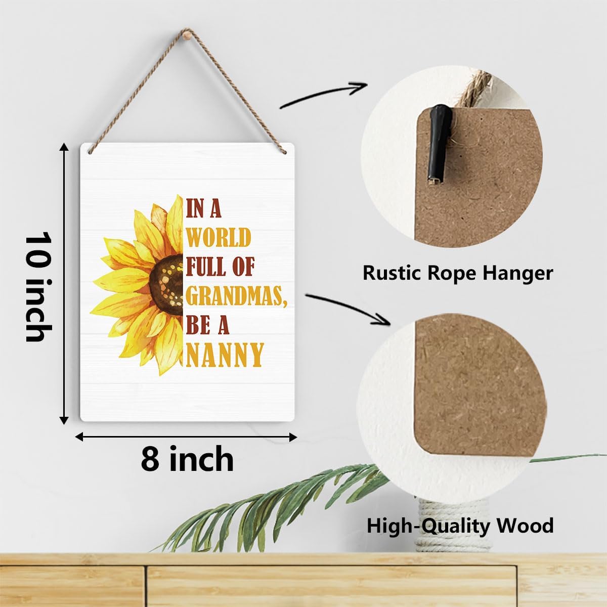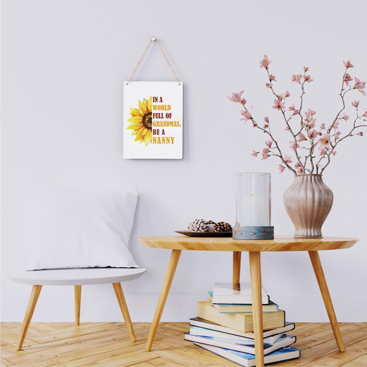 Nanny Gifts Grandmother Gifts Great Grandma Gifts, Sunflower Wall Art Decor Hanging Sign, Mothers Day Birthday Gifts for Grandma, Bedroom Living Room Kitchen Decor Wooden Sign 8x10 Inches (White)