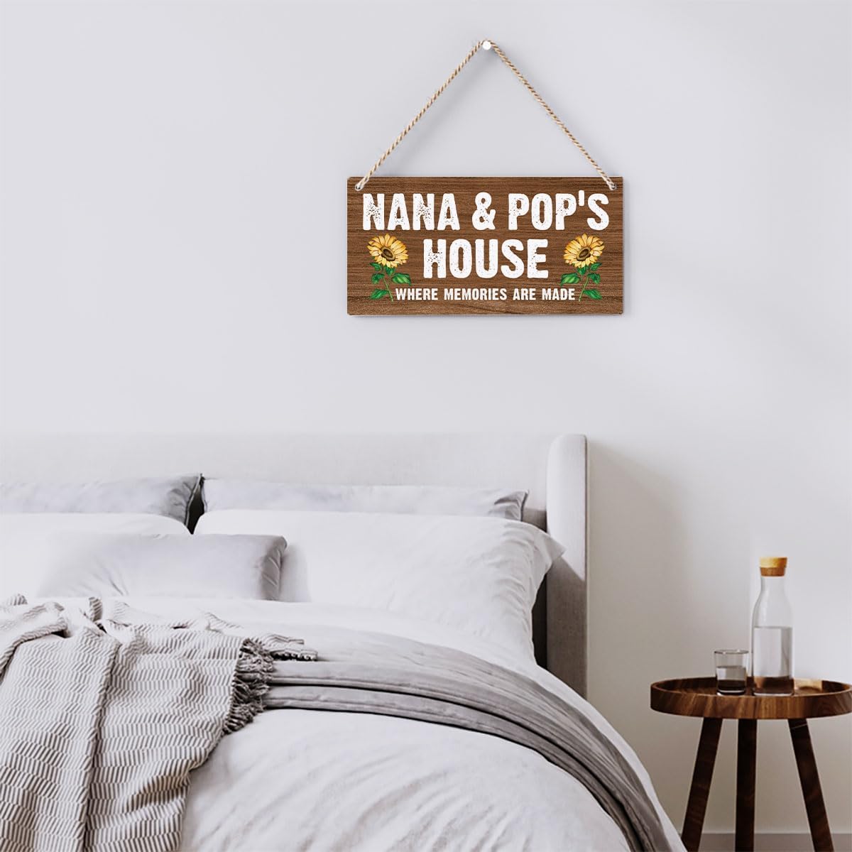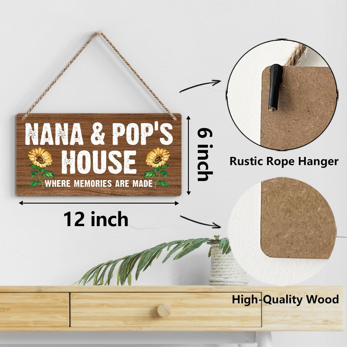 Rustic Nana and Pop's House Wooden Sign Decor, Outdoor Porch Decoration Hanging Signs 12x6 Inches, Gifts for Grandma Grandpa - Yard Wall Art Decor Sign, Birthday Gifts for Grandpa Grandma